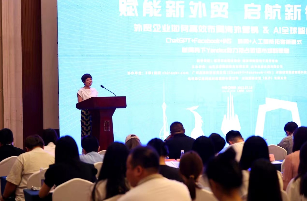 首先由临沂外贸共进会会长、山东裕瑞国际高明女士为此次外贸大讲堂活动致辞。高总表示当下人工智能AI和ChatGPT迭代发展,影响社会的方方面面,未来人工智能赋能外贸的发展已成为未来全球获客的主要趋势,对于目前传统的获客模式是一场颠覆性的变革。
