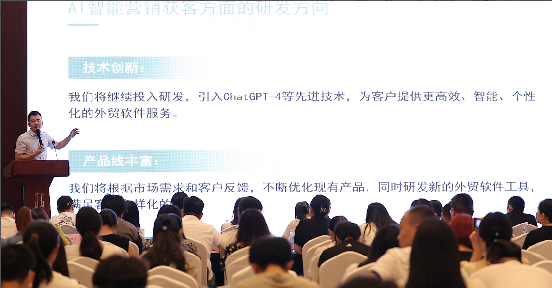 再次由品店科技创始人郑光鸿先生,郑总分享外贸+人工智能拓客新模式,人工智能赋能外贸的发展已成为未来全球获客的主要趋势,对于目前传统的获客模式是一场颠覆性的变革,希望外贸人们能提前做好预判和准备。