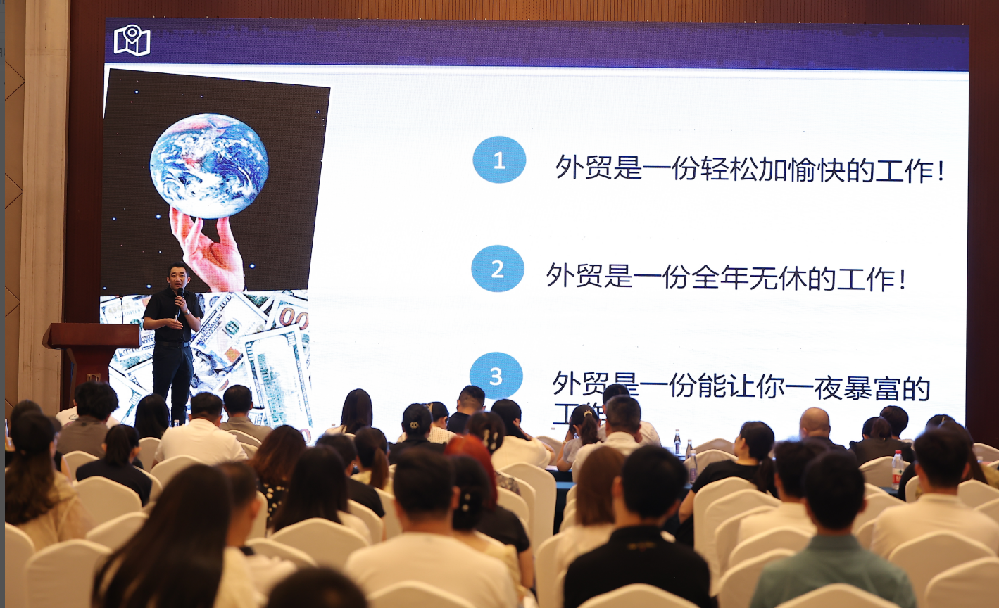 2023年7月18日“外贸企业如何高效布局海外营销 & AI全球智能获客”大讲堂在临沂北城新区蓝海国际大饭店举行。临沂市贸促会党组副书记,副会长郭明德会长等有关领导出席会议,会议喜迎了300多家企业,会议现场气氛热烈,各企业家均表示获益良好。