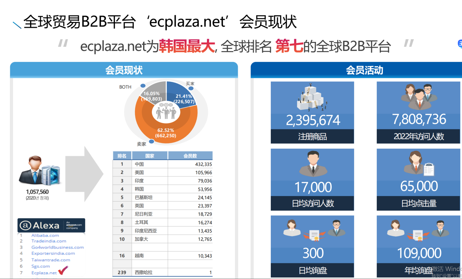 着重介绍了平台强大的全球营销推广和会员群体等的雄厚实力。