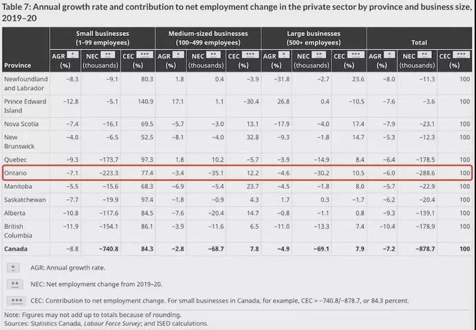 “所有省份的私营部门就业人数都在下降。在小企业中,所有省份的就业人数都在下降。”部门报告《2021 年小企业关键统计数据》指出,小型运营商在大流行中的总员工数为770万,约占加拿大劳动力的 68%。