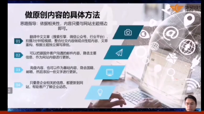 4月7日,由外贸快车特邀陈沿舟老师讲解《独立站SEO内容营销的九大秘诀》与大家分享关于不同网站内容类型的优化思路,使外贸人对独立站的优化工作更有方向,有章法,如何迅速盘活独立站,让更多的采购商留下询盘方法。